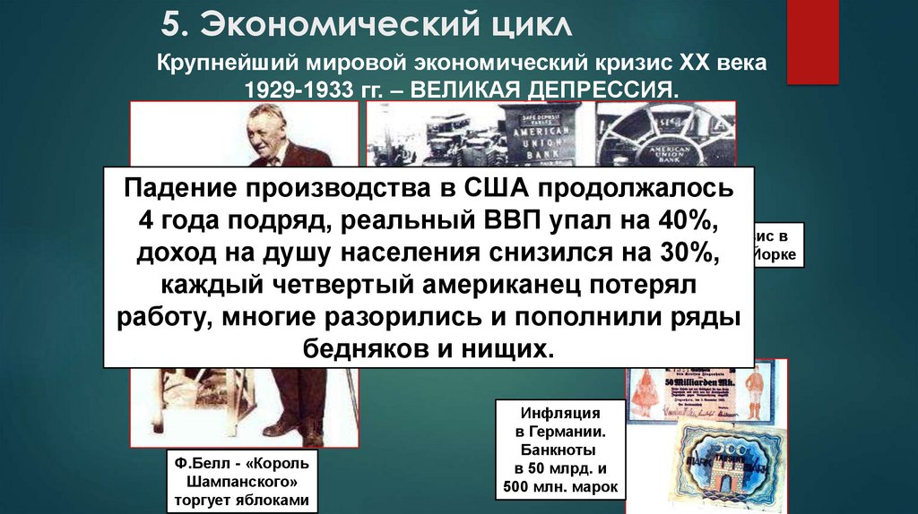 Крупнейший мировой экономический кризис ХХ века1929-1933 гг. – ВЕЛИКАЯ ДЕПРЕССИЯ.