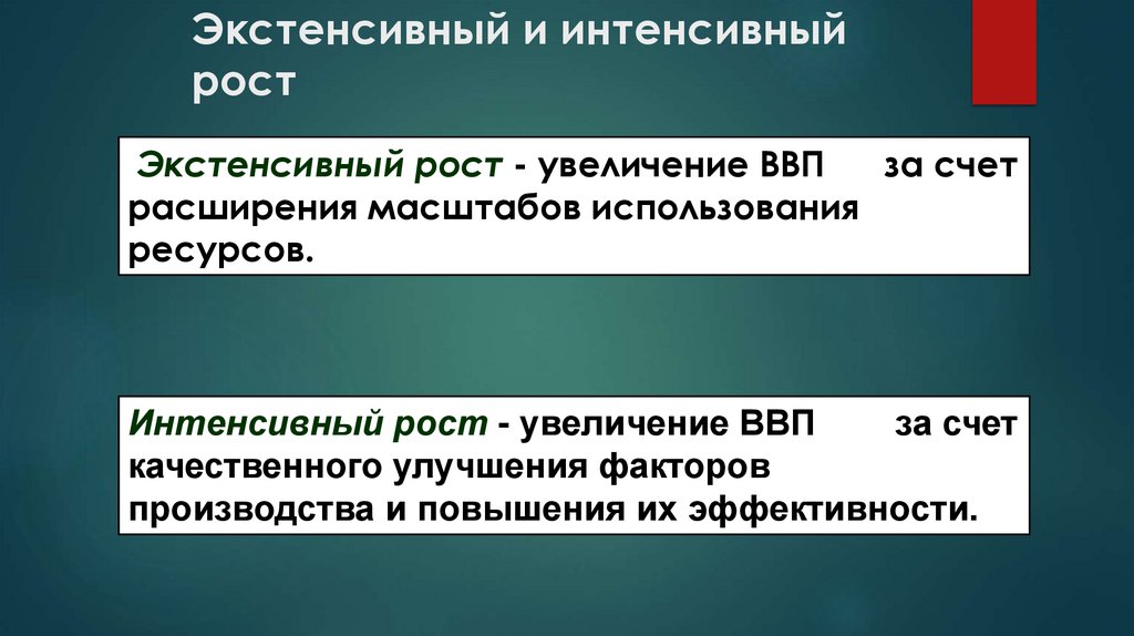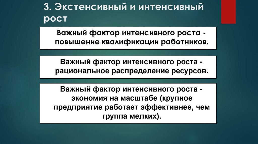 Важный фактор интенсивного роста повышение квалификации работников.Важный фактор интенсивного роста рациональное распределение ресурсов.