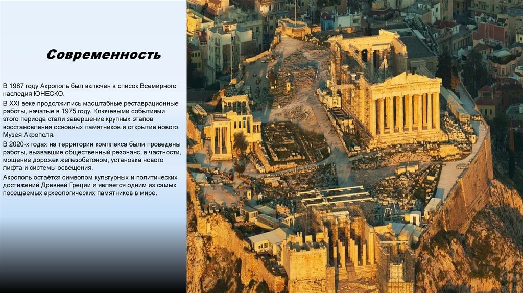 СовременностьВ 1987 году Акрополь был включён в список Всемирного