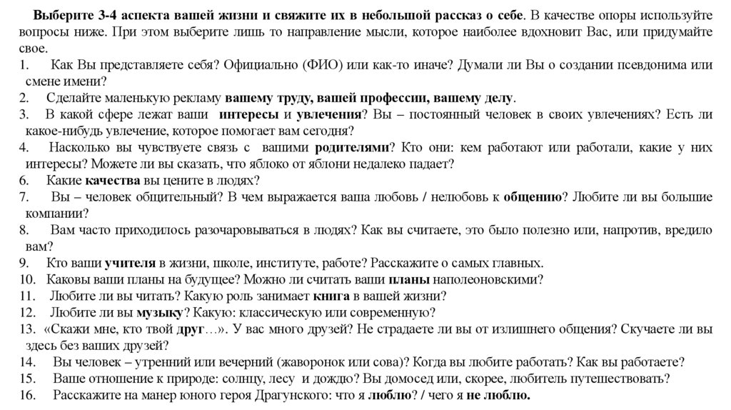 1.Придумайте 1 слово, которое охарактеризовало бытекст целиком.