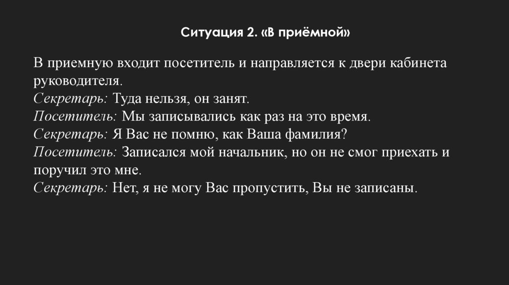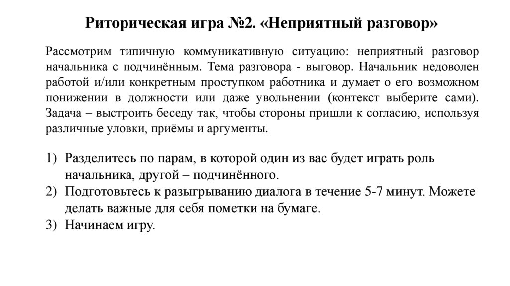 Риторическая игра №2. «Неприятный разговор»Рассмотрим типичную коммуникативную ситуацию: неприятный разговор