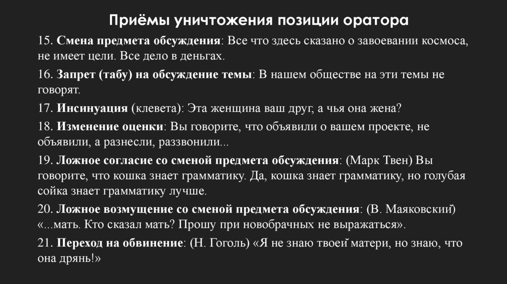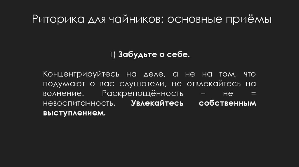 (регламент), вызывать необходимые реакции в аудитории, делать
