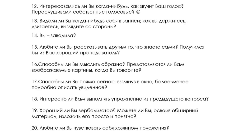 5) Владеть голосом, управлять своими эмоциями, чувствовать время