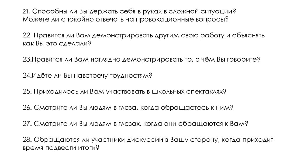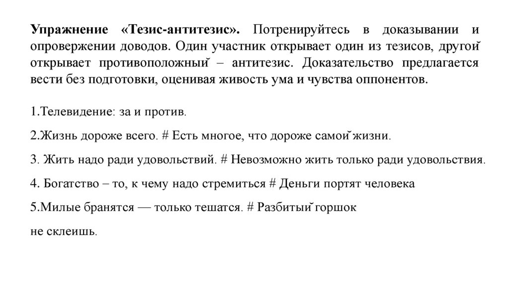 презентацию, вести переговоры, отстаивать свое мнение, отвечать на