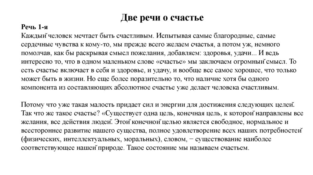 Так что же такое счастье? «Существует одна цель, конечная цель, к которой направлены все