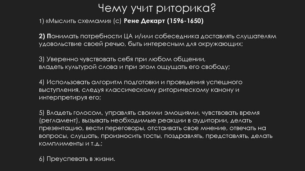 Чему учит риторика?1) «Мыслить схемами» (с) Рене Декарт (1596-1650)