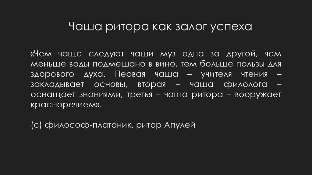 Чаша ритора как залог успеха«Чем чаще следуют чаши муз одна за другой, чем