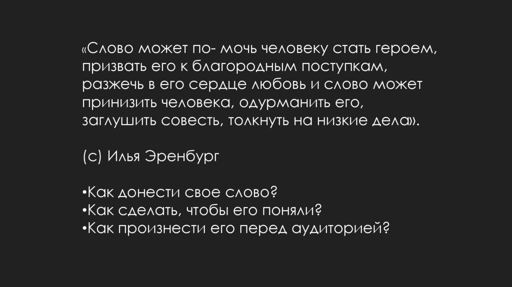 «Слово может по- мочь человеку стать героем,призвать его к благородным поступкам,