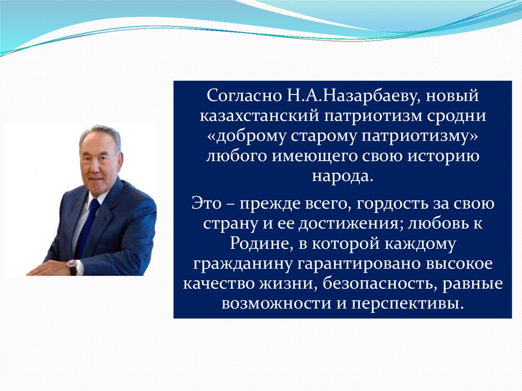 Согласно Н.А.Назарбаеву, новыйказахстанский патриотизм сродни