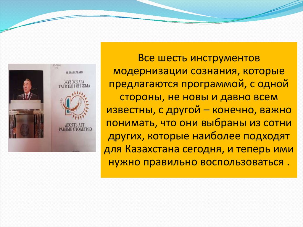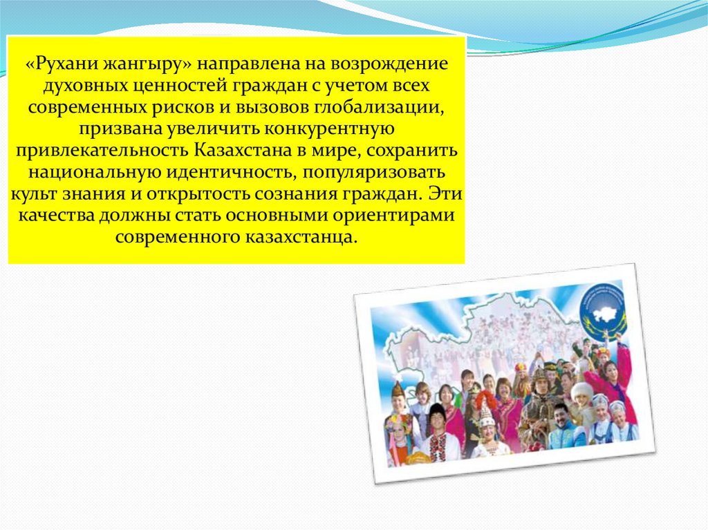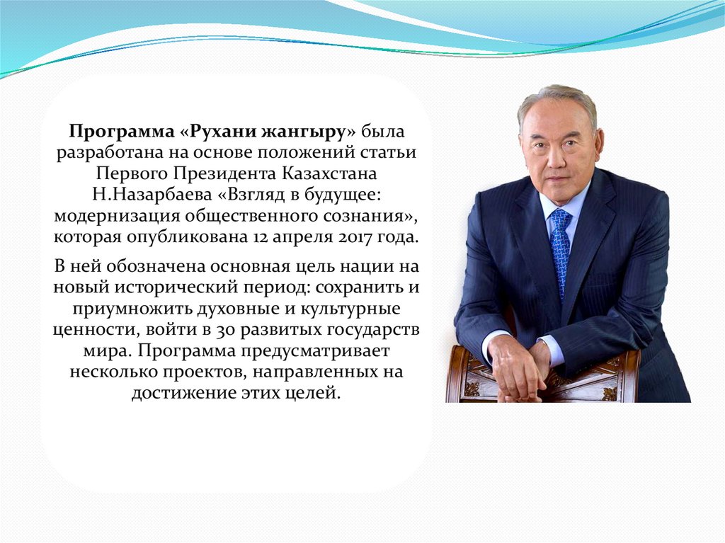 Программа «Рухани жангыру» быларазработана на основе положений статьи