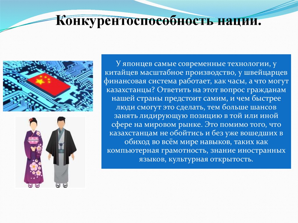 Конкурентоспособность нации.У японцев самые современные технологии, у