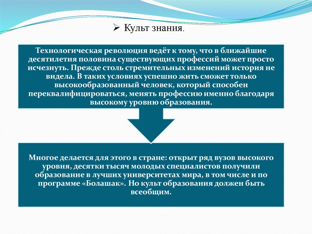 Культ знания.Технологическая революция ведёт к тому, что в ближайшие