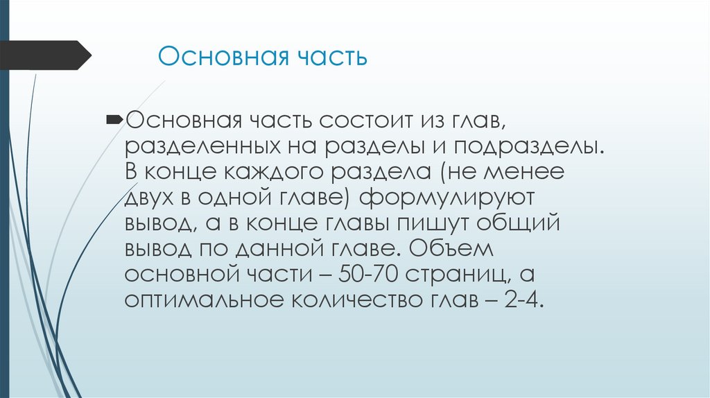 Основная часть состоит из глав,разделенных на разделы и подразделы.