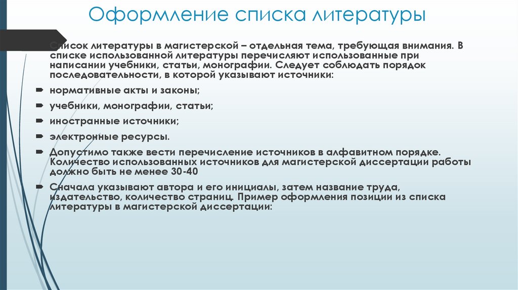 Список литературы в магистерской – отдельная тема, требующая внимания. Всписке использованной литературы перечисляют использованные при