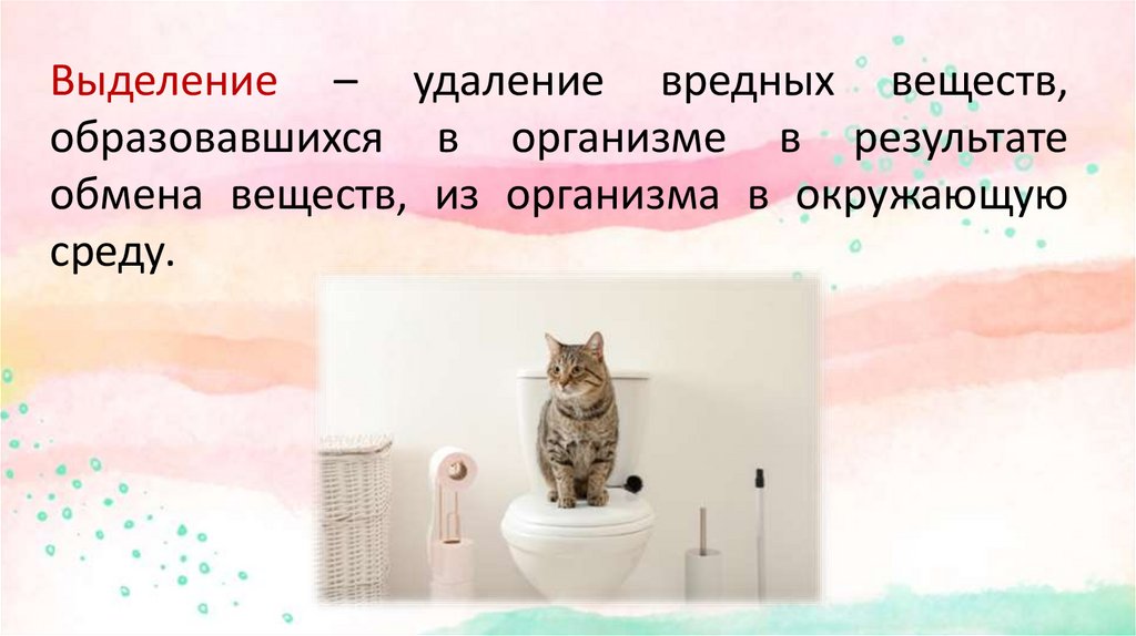 Выделение – удаление вредных веществ,образовавшихся в организме в результате