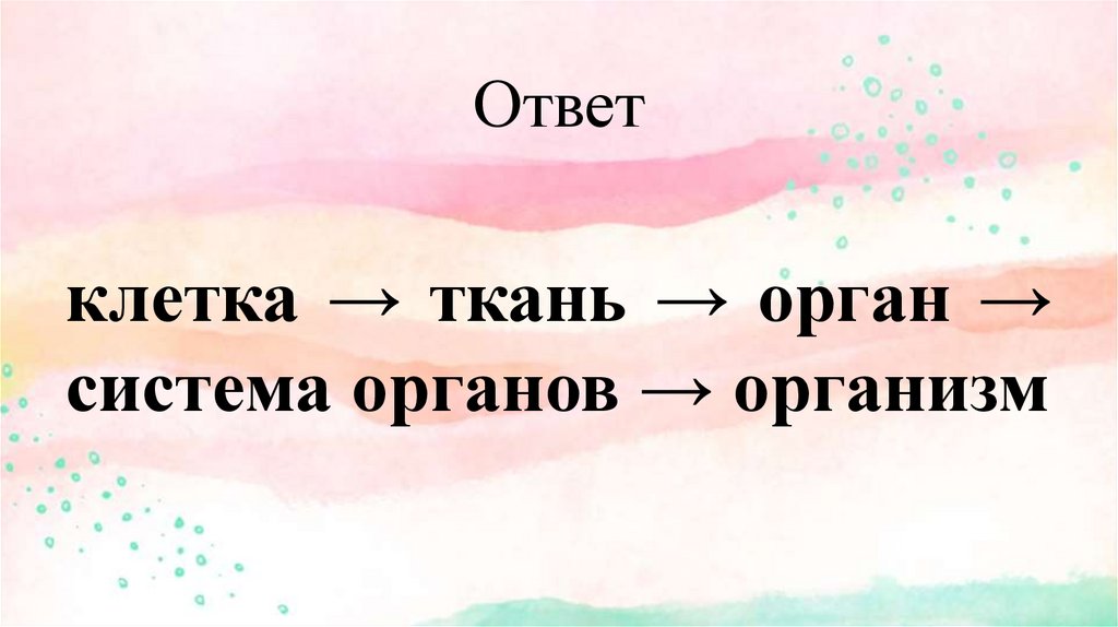 клетка → ткань → орган →система органов → организм