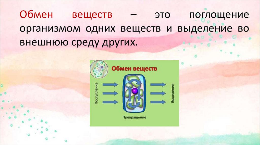 организмом одних веществ и выделение во