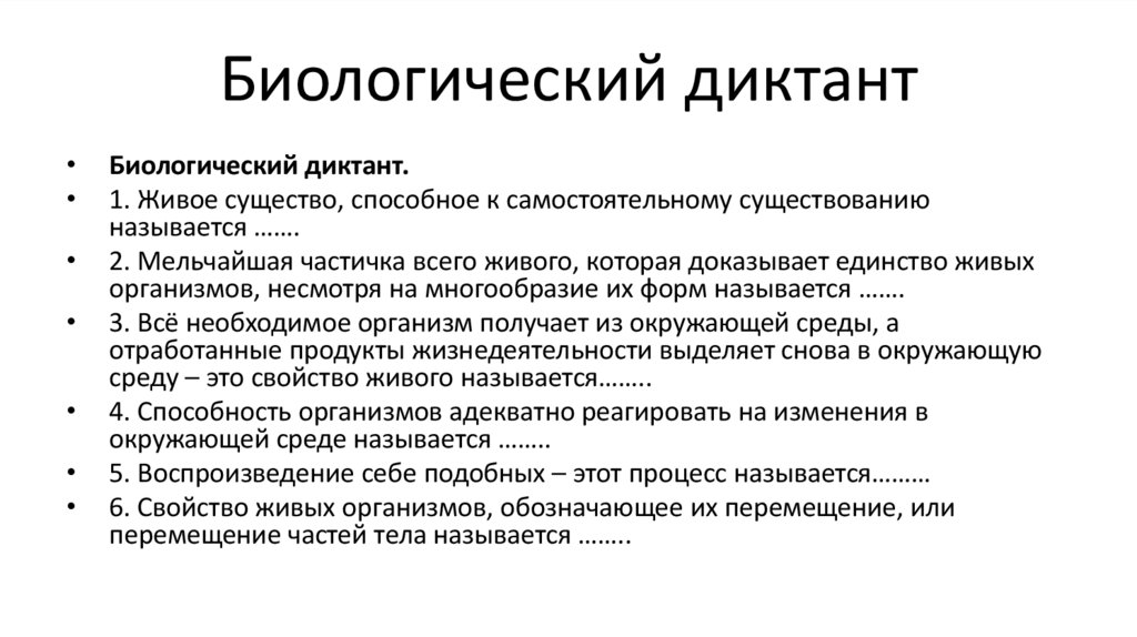 Биологический диктант.
