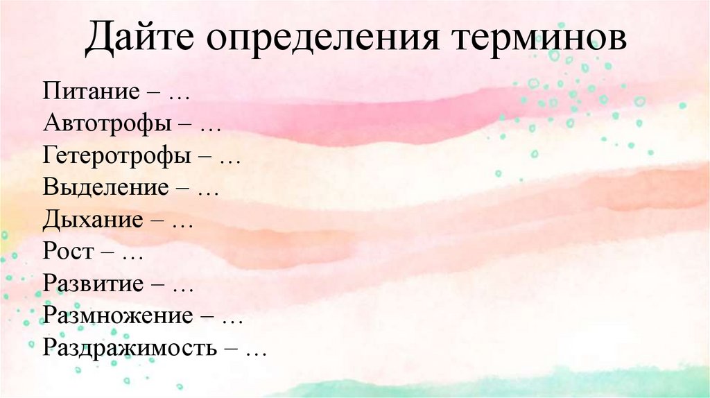 Питание – поглощение полезных веществ изокружающей среды.