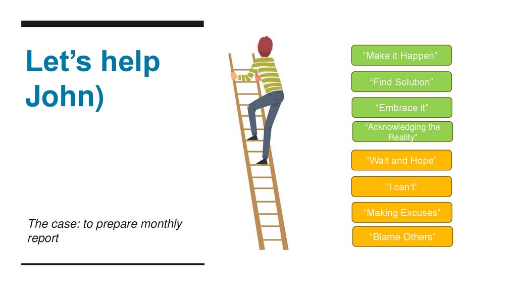 Victim mindset vs Accountability mindset17. Let’s help John)