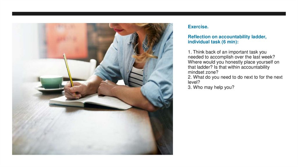18. Exercise. Reflection on accountability ladder, individual task (6 min): 1. Think back of an important task you needed to