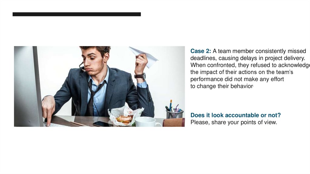 Case 2: A team member consistently misseddeadlines, causing delays in project delivery.