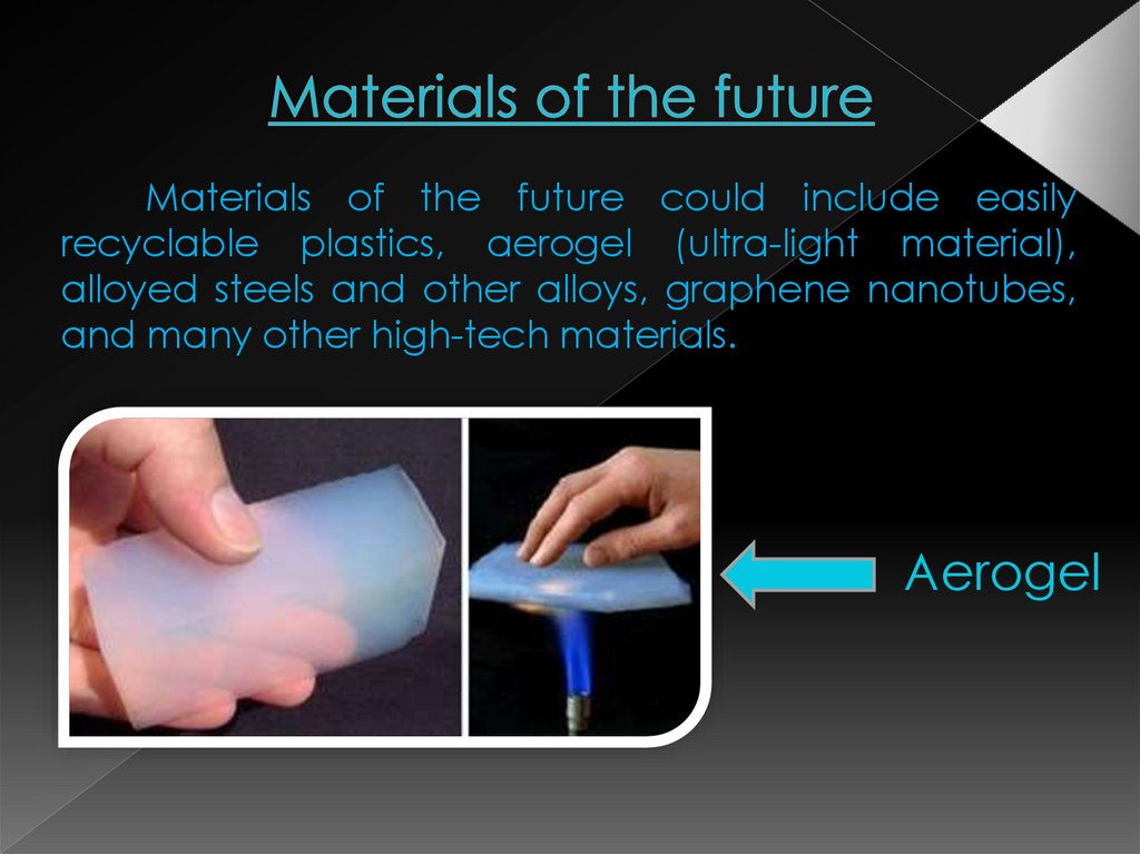 could include easilyrecyclable plastics, aerogel (ultra-light material),