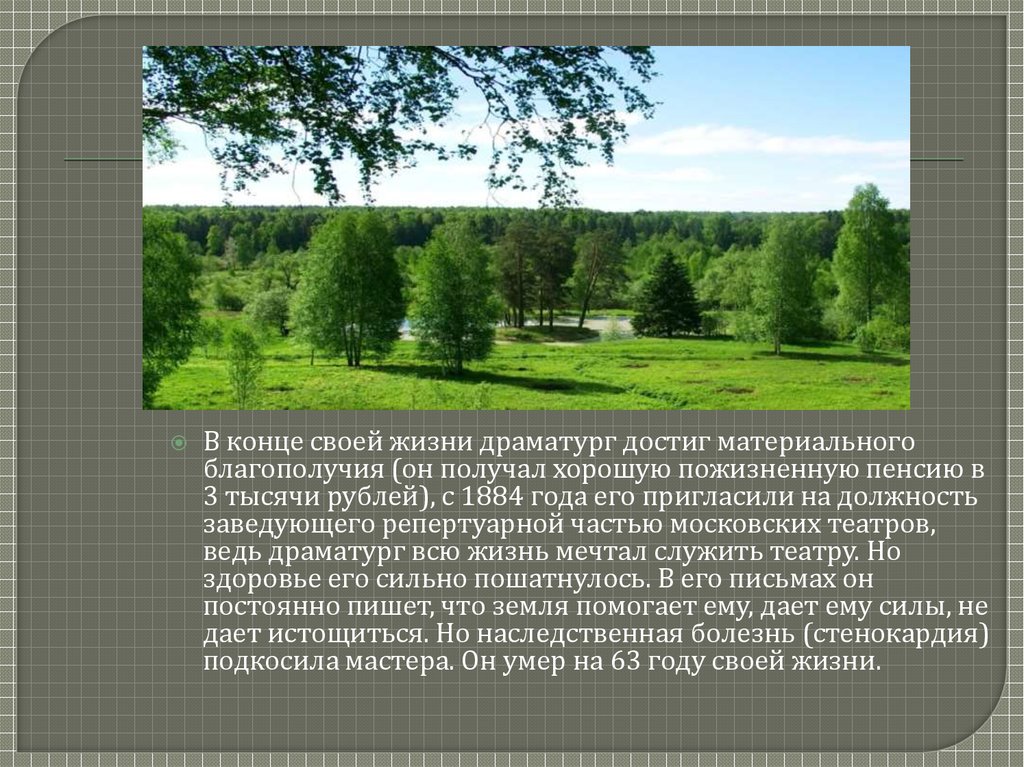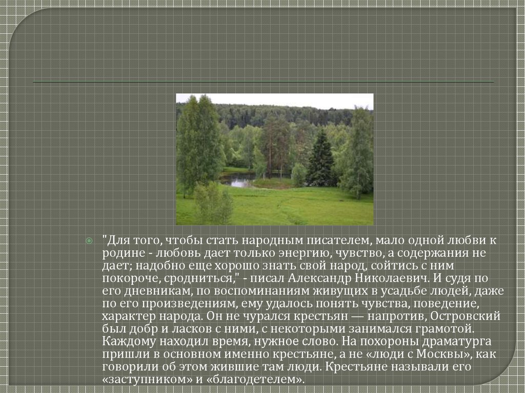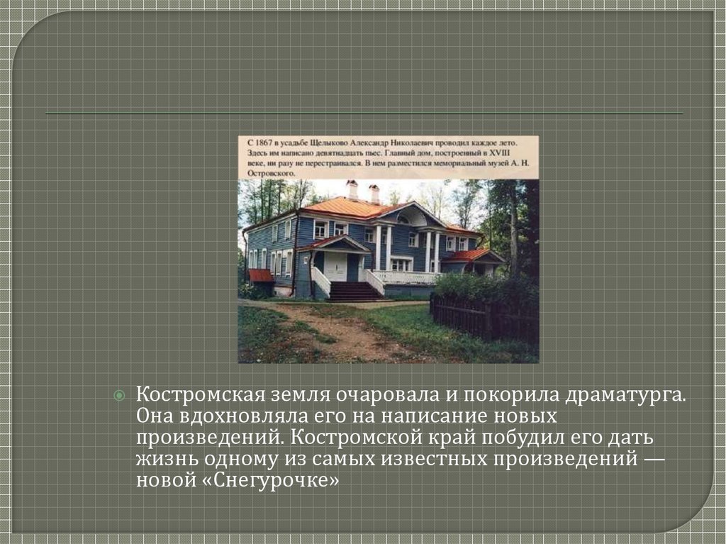 Костромская земля очаровала и покорила драматурга.Она вдохновляла его на написание новых