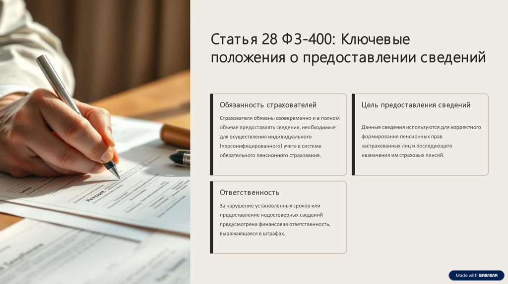 Стать я 28 Ф З-400: Ключев ыеположения о предоставлении сведений