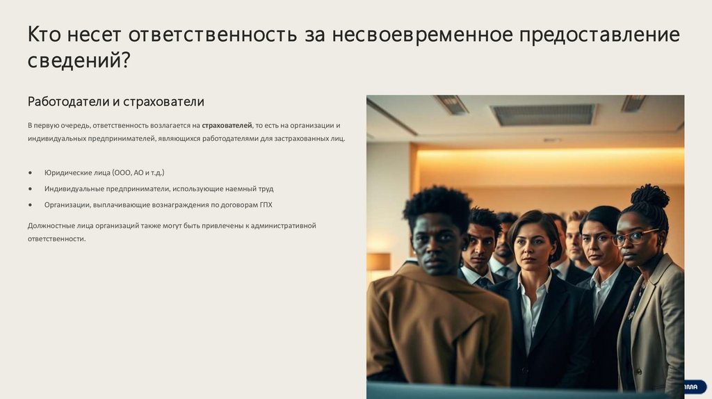 В первую очередь, ответственность возлагается на страхователей, то есть на организации и