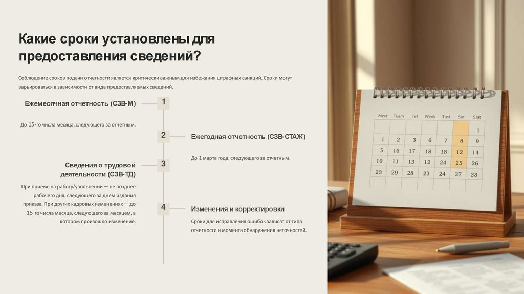 Соблюдение сроков подачи отчетности является критически важным для избежания штрафных санкций. Сроки могут