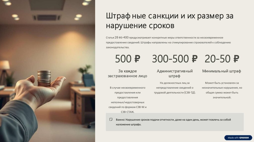 Статья 28 ФЗ-400 предусматривает конкретные меры ответственности за несвоевременное