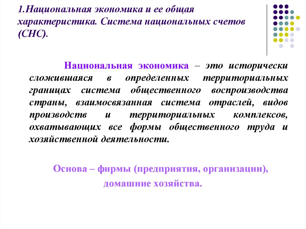 2. 1.Национальная экономика и ее общая характеристика. Система национальных счетов (СНС).