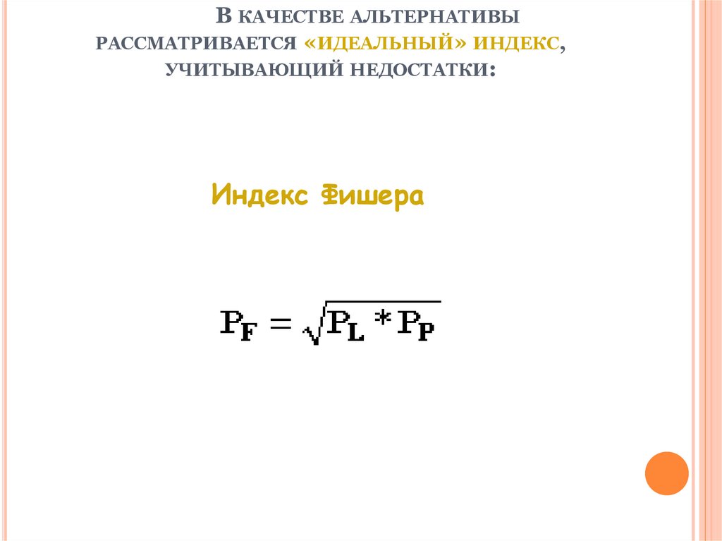 В КАЧЕСТВЕ АЛЬТЕРНАТИВЫРАССМАТРИВАЕТСЯ «ИДЕАЛЬНЫЙ» ИНДЕКС,