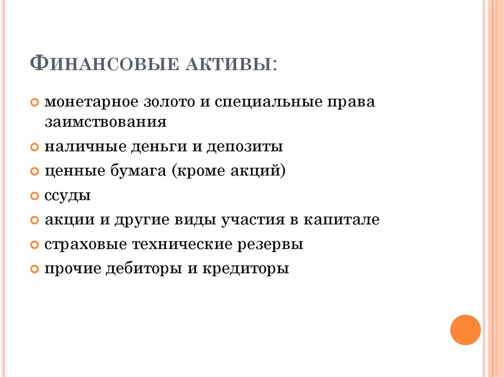 ФИНАНСОВЫЕ АКТИВЫ:монетарное золото и специальные права