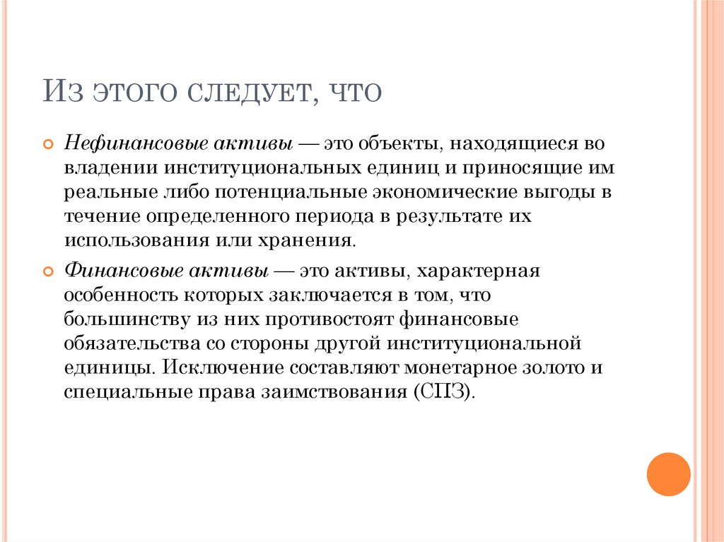 ИЗ ЭТОГО СЛЕДУЕТ, ЧТОНефинансовые активы — это объекты, находящиеся во