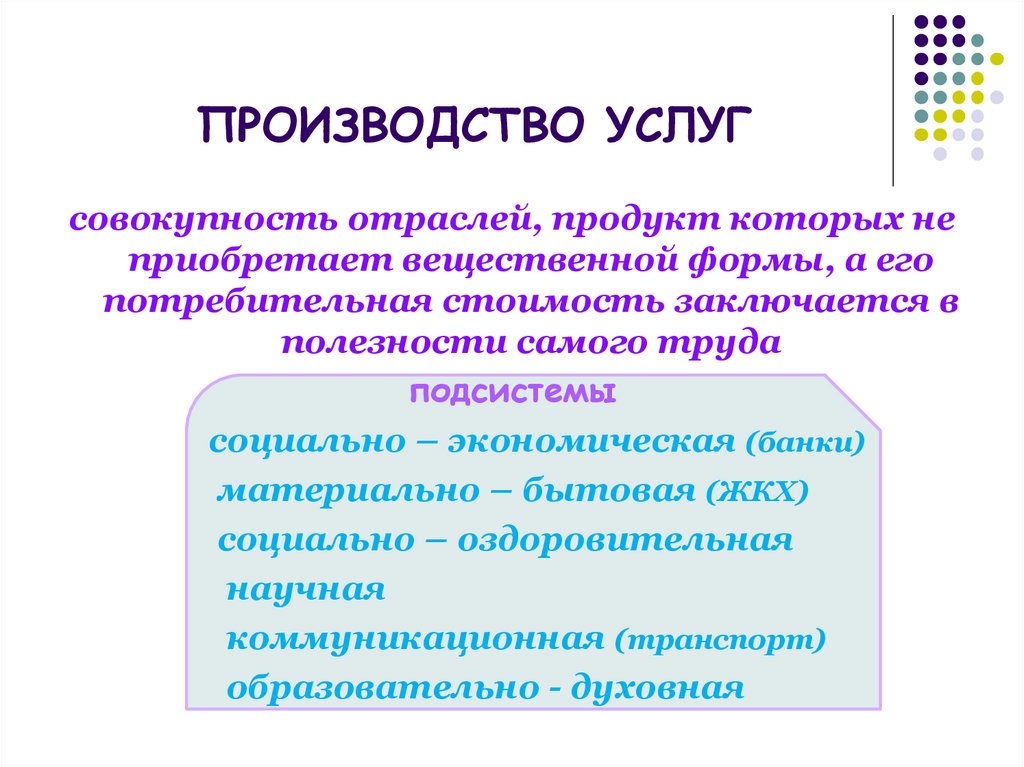 совокупность отраслей, продукт которых неприобретает вещественной формы, а его