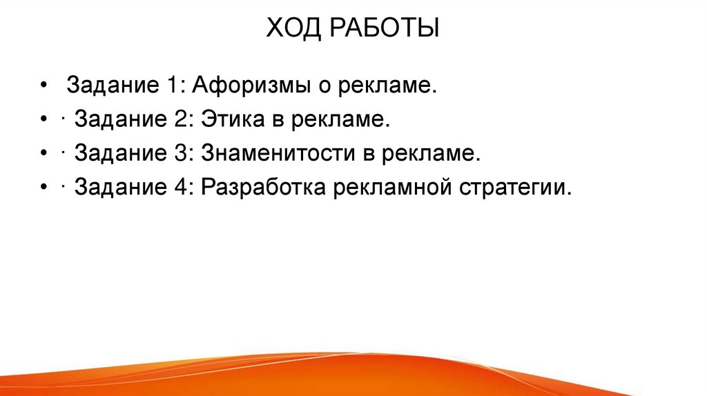 ХОД РАБОТЫ• Задание 1: Афоризмы о рекламе.