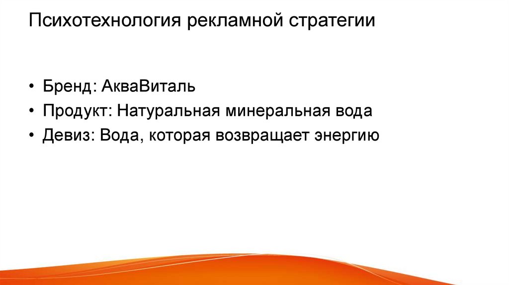 Психотехнология рекламной стратегии• Бренд: АкваВиталь