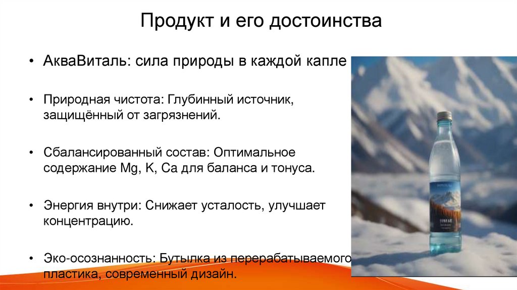 Продукт и его достоинства• АкваВиталь: сила природы в каждой капле