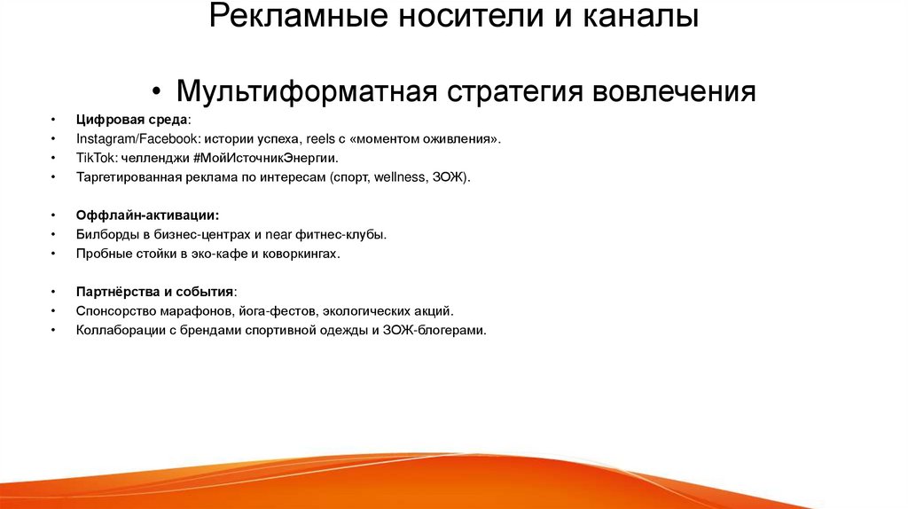 Рекламные носители и каналы• Мультиформатная стратегия вовлечения