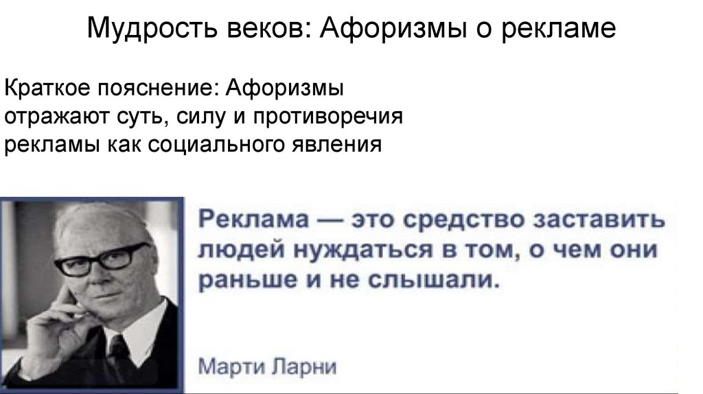Мудрость веков: Афоризмы о рекламеКраткое пояснение: Афоризмы