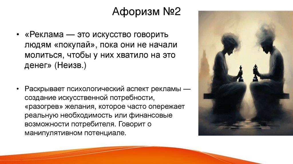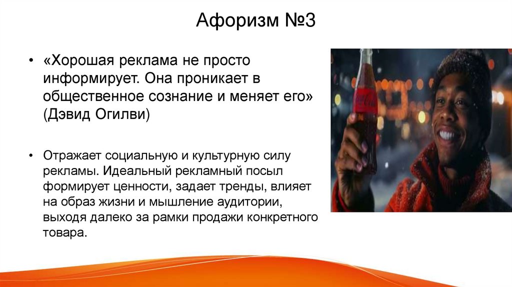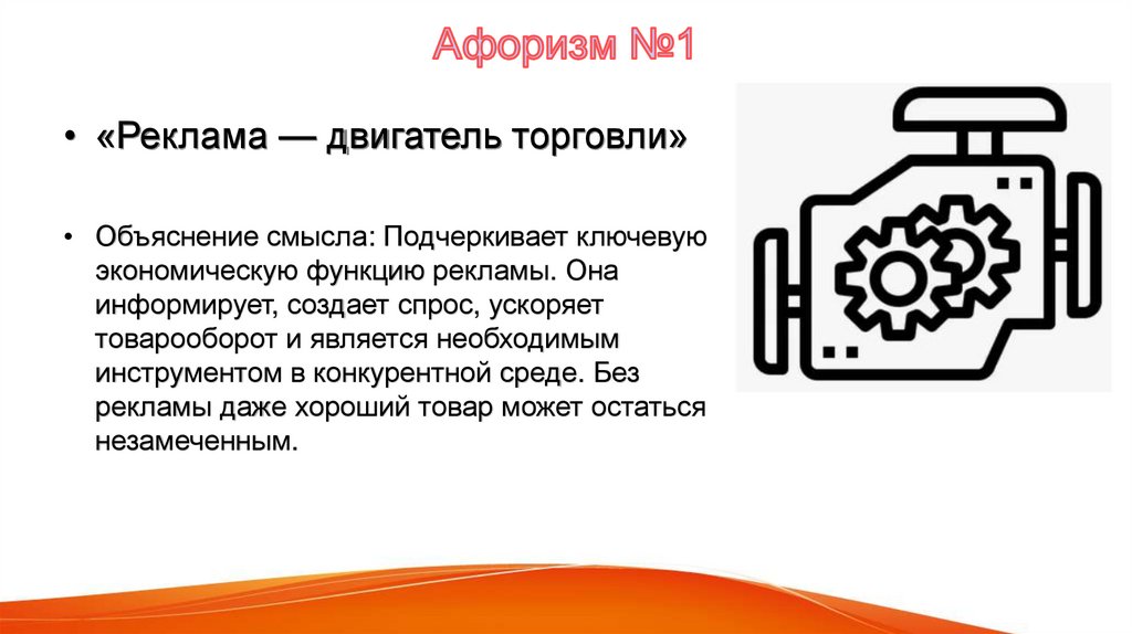 • «Реклама — двигатель торговли»• Объяснение смысла: Подчеркивает ключевую