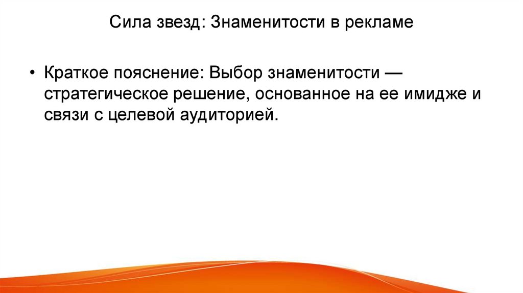 Сила звезд: Знаменитости в рекламе• Краткое пояснение: Выбор знаменитости —