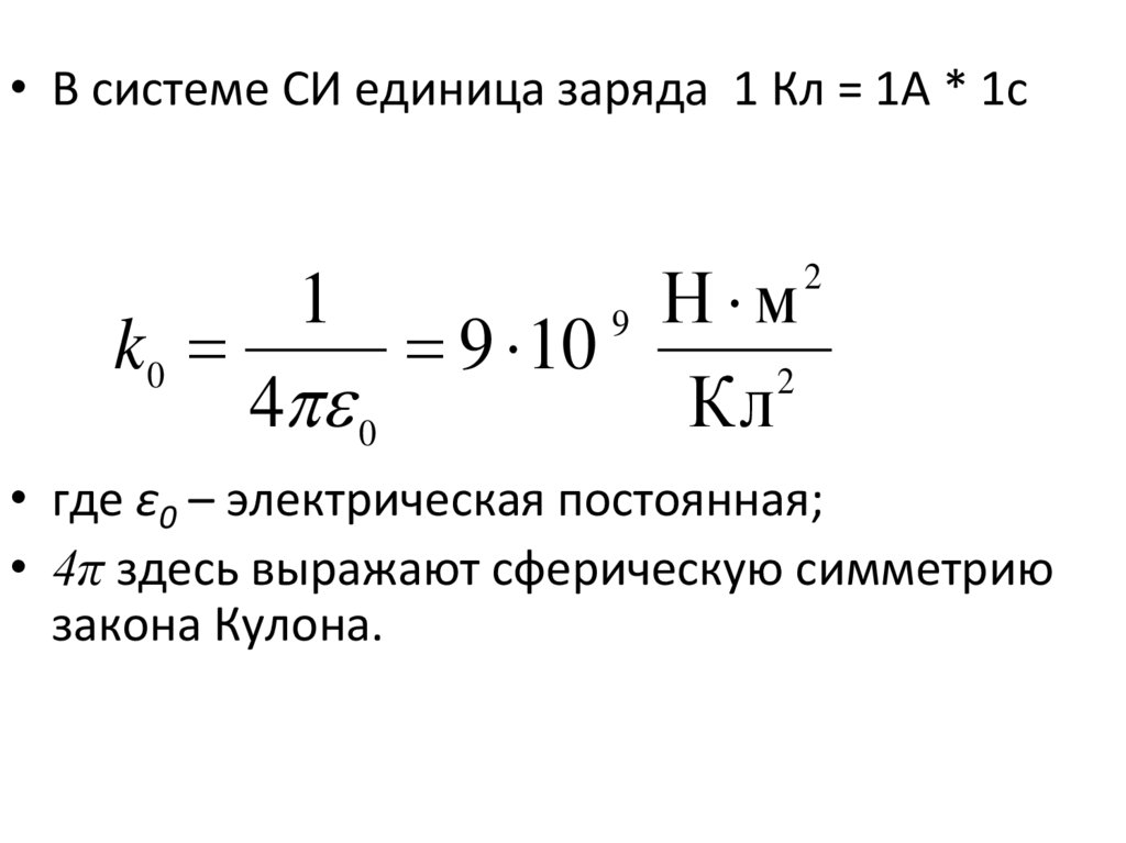 • В системе СИ единица заряда 1 Кл = 1А * 1с1