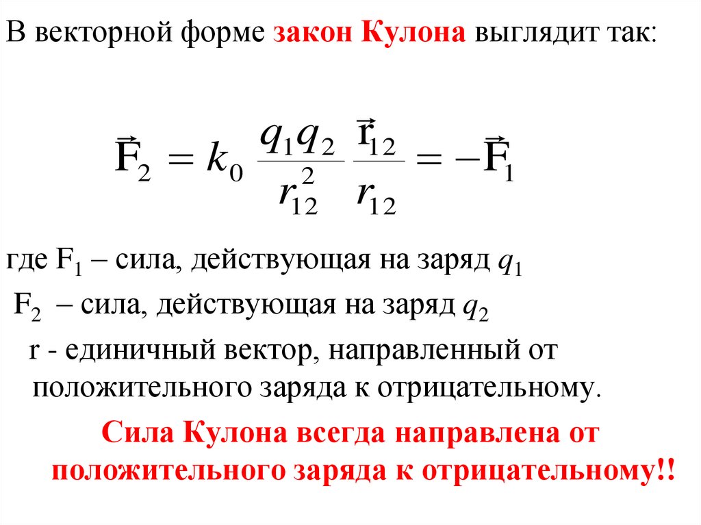 В векторной форме закон Кулона выглядит так:q1q 2 r12