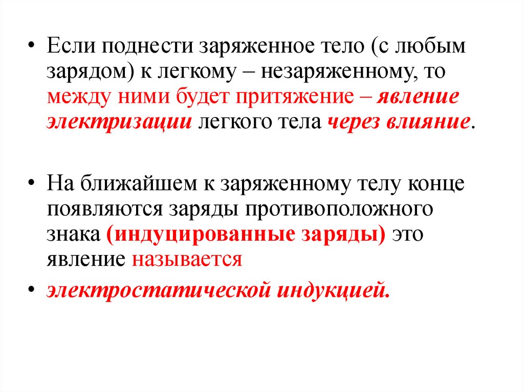 • Если поднести заряженное тело (с любымзарядом) к легкому – незаряженному, то