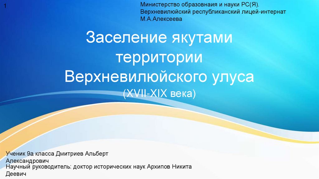 1) Первые поселенцы якуты появились бассейне р. Вилюй первой половине 17 века.