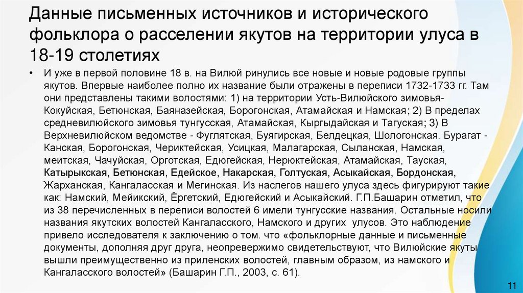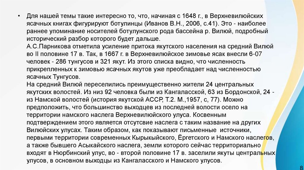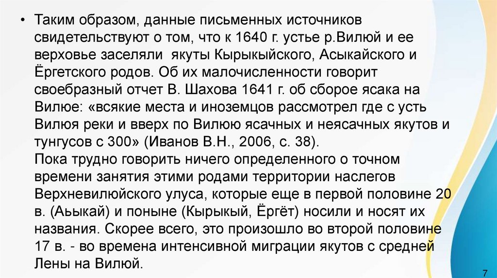 2) Территории Верхневилюйского улуса была заселена отдельными группами якутов