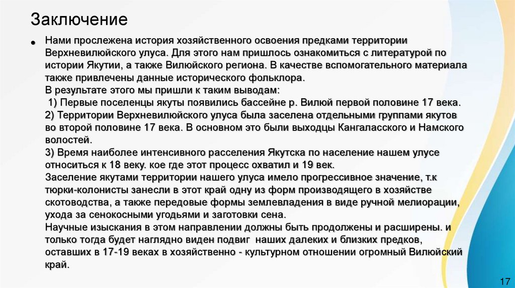 Заселение якутами территории нашего улуса имело прогрессивное значение, т.к
